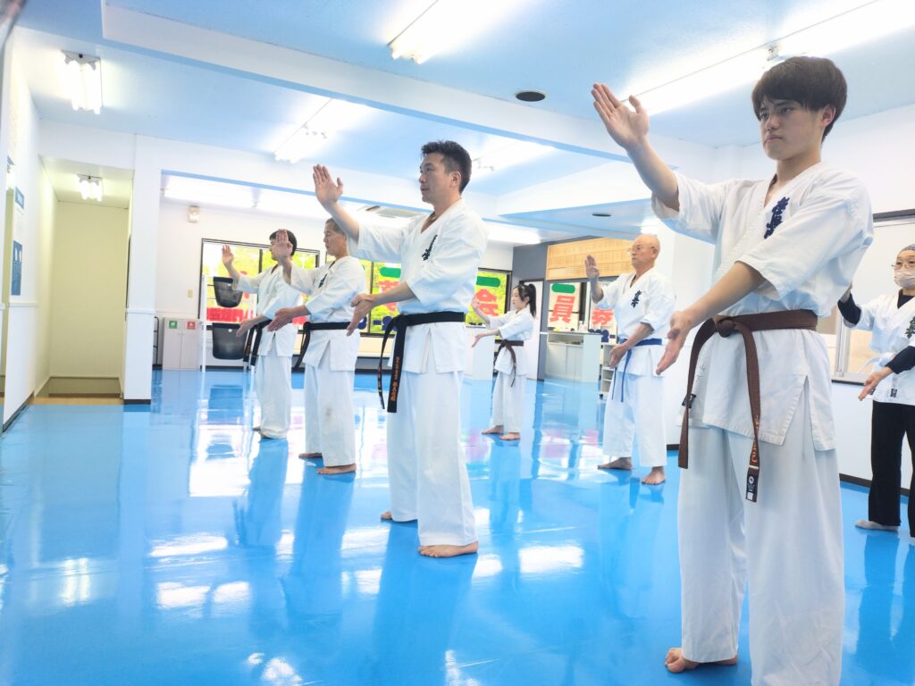 ●一般部 組手の基本技を正しく使えるように。その場での仮想、組手移動で形づくり。