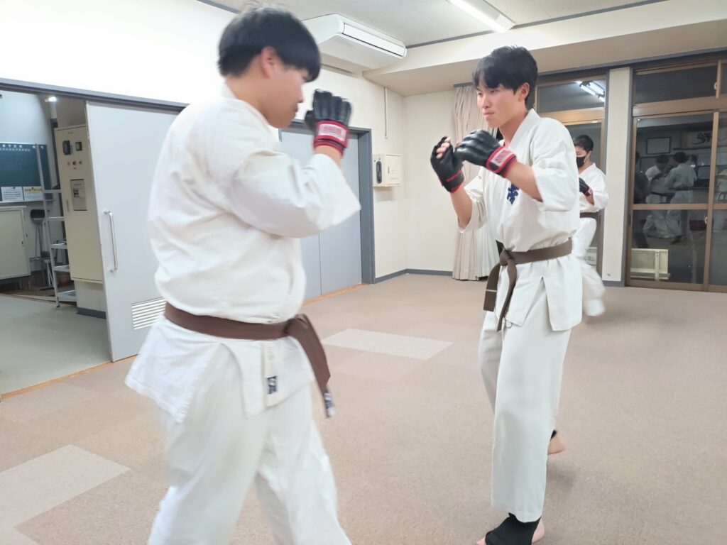一組ずつ軽打法。他の人の組手を見ることも大切な稽古です。自分がやっているつもりで見るようにしましょう。