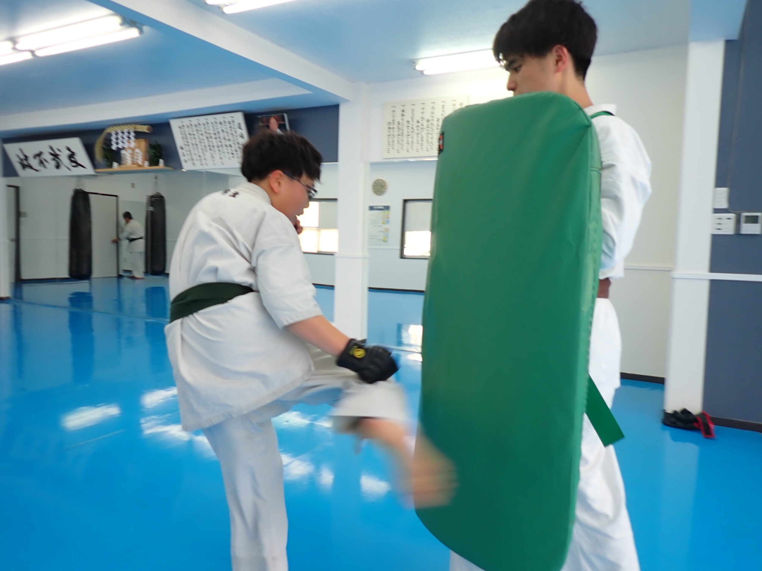 稽古後…K池さんとY下君が結構ハードに自主稽古。レベルアップ中です。