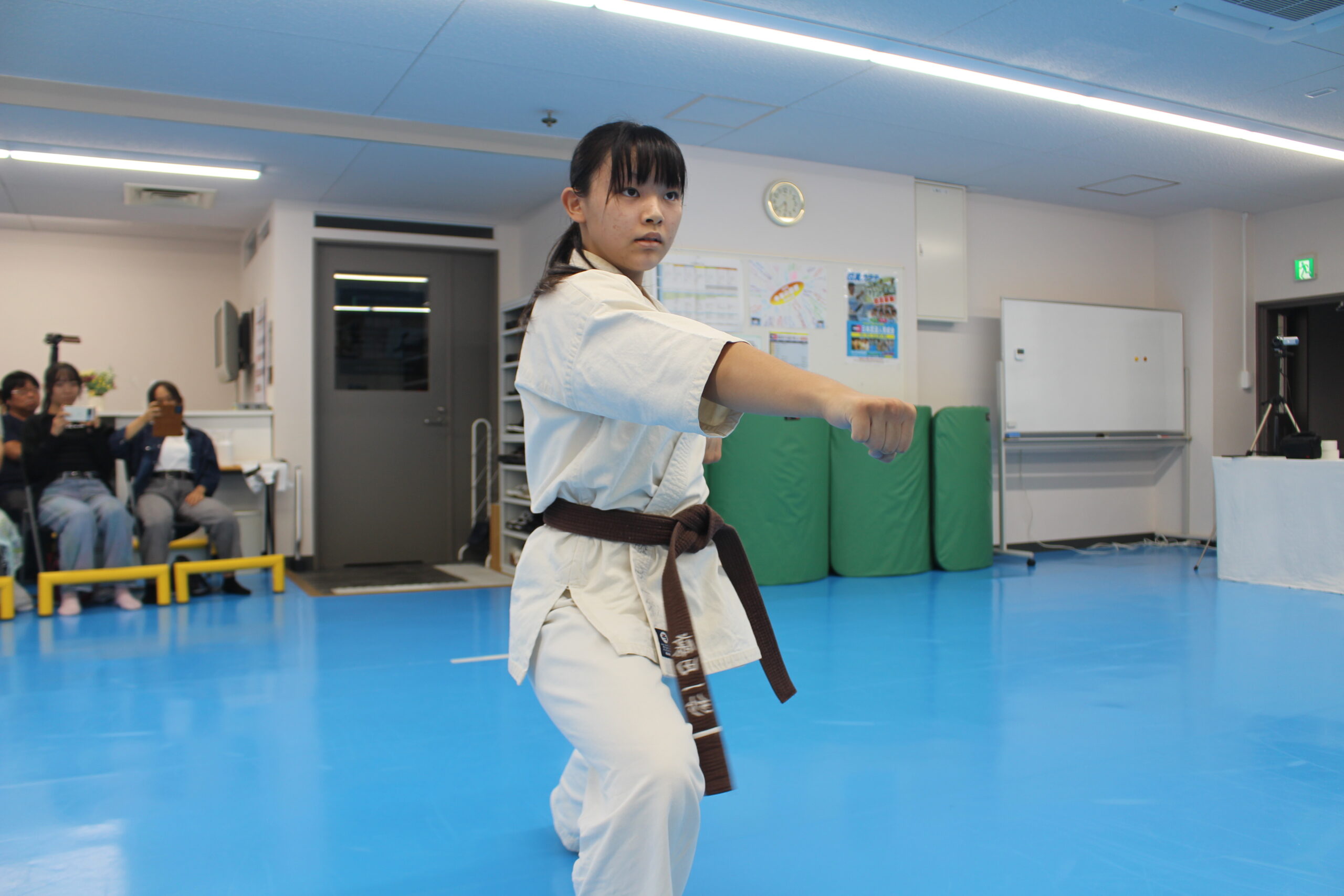開始直後は緊張した表情も見られましたが、審査が進むにつれて次第に動きが安定し、正しい立ち方や動作のメリハリなど、これまでの稽古の積み重ねが随所に表れていました。