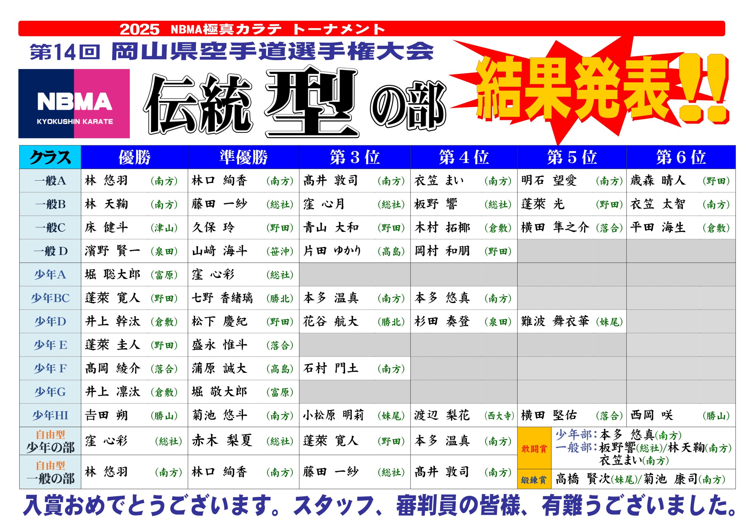 大会運営にご協力いただいた審判員・スタッフの皆様に心より感謝申し上げます。